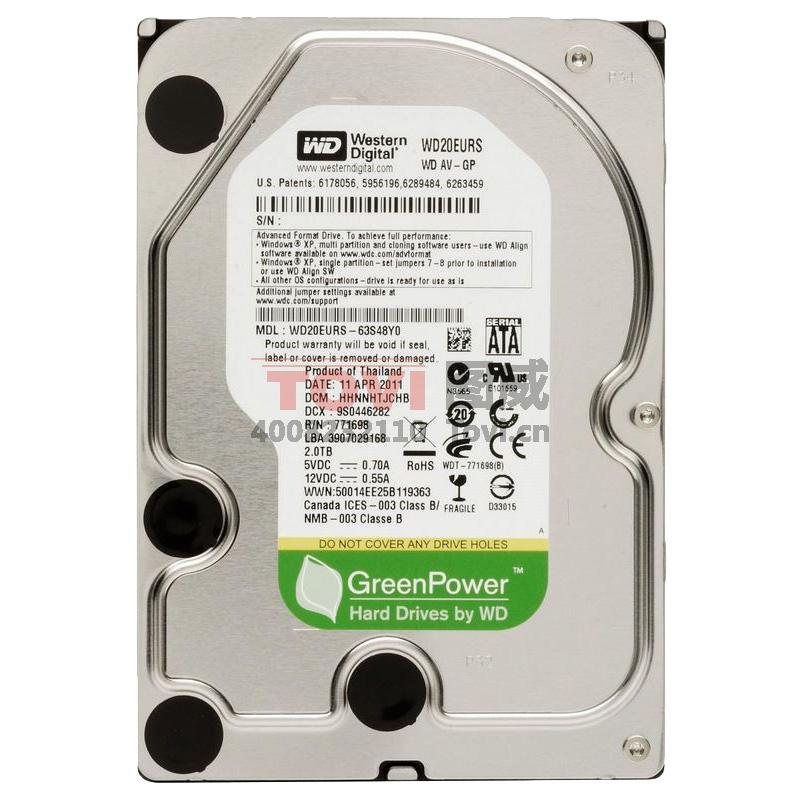 西部数据(WD)AV-GP系列 2TB SATA3 64M 监控级硬盘(WD20EURX)